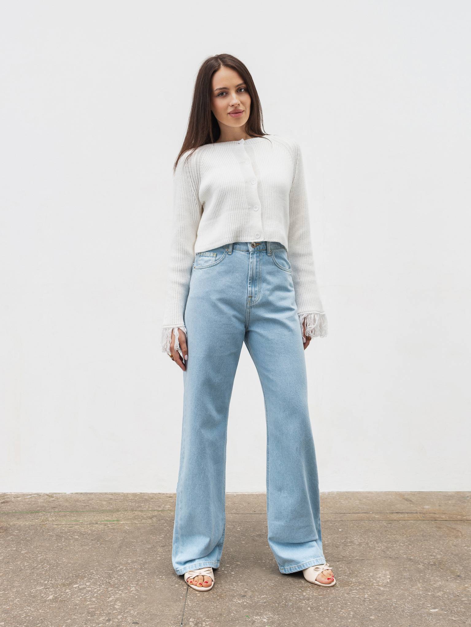 Джинсы "Тайт" Romashka, Молочный, S 18968