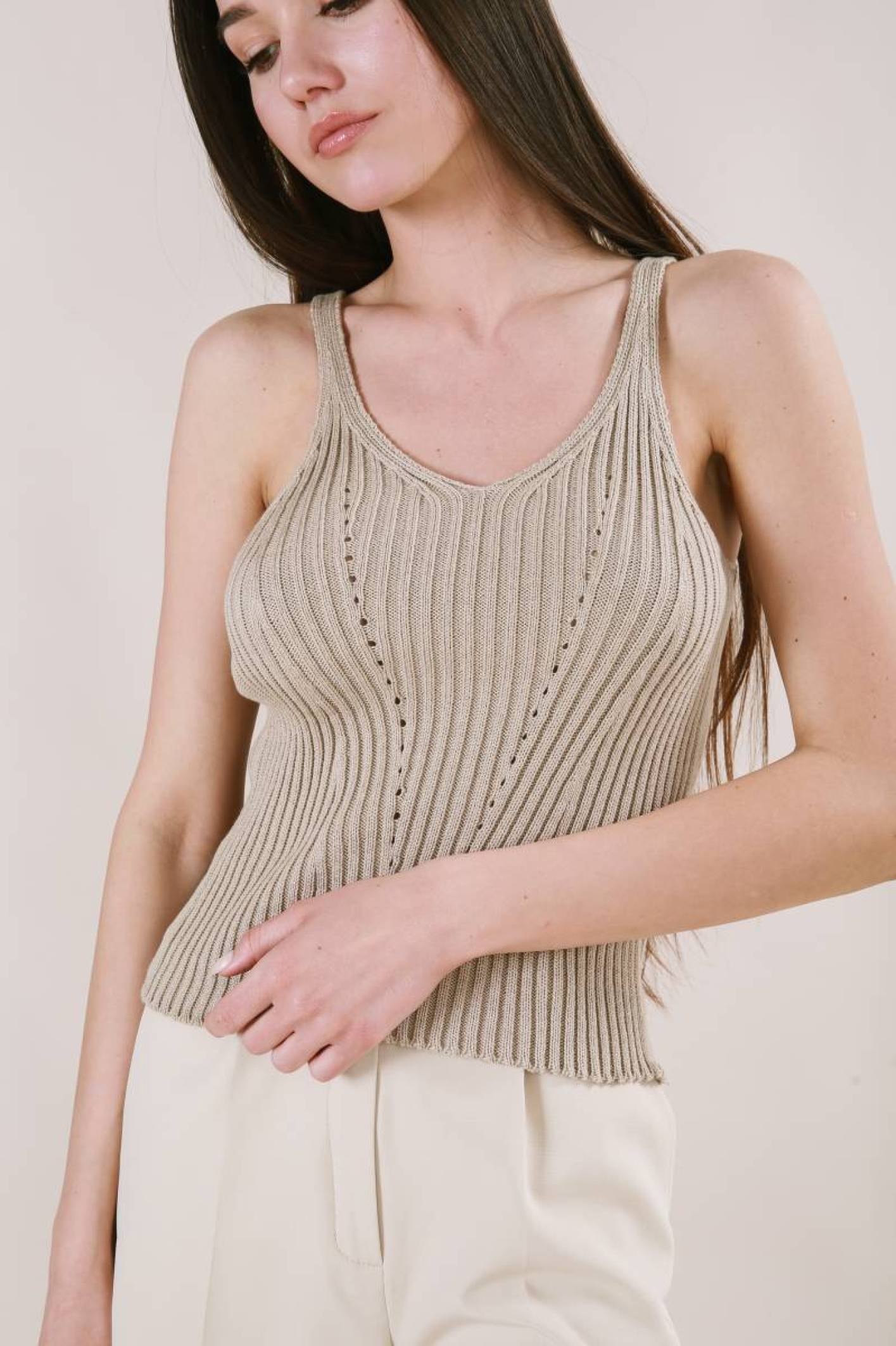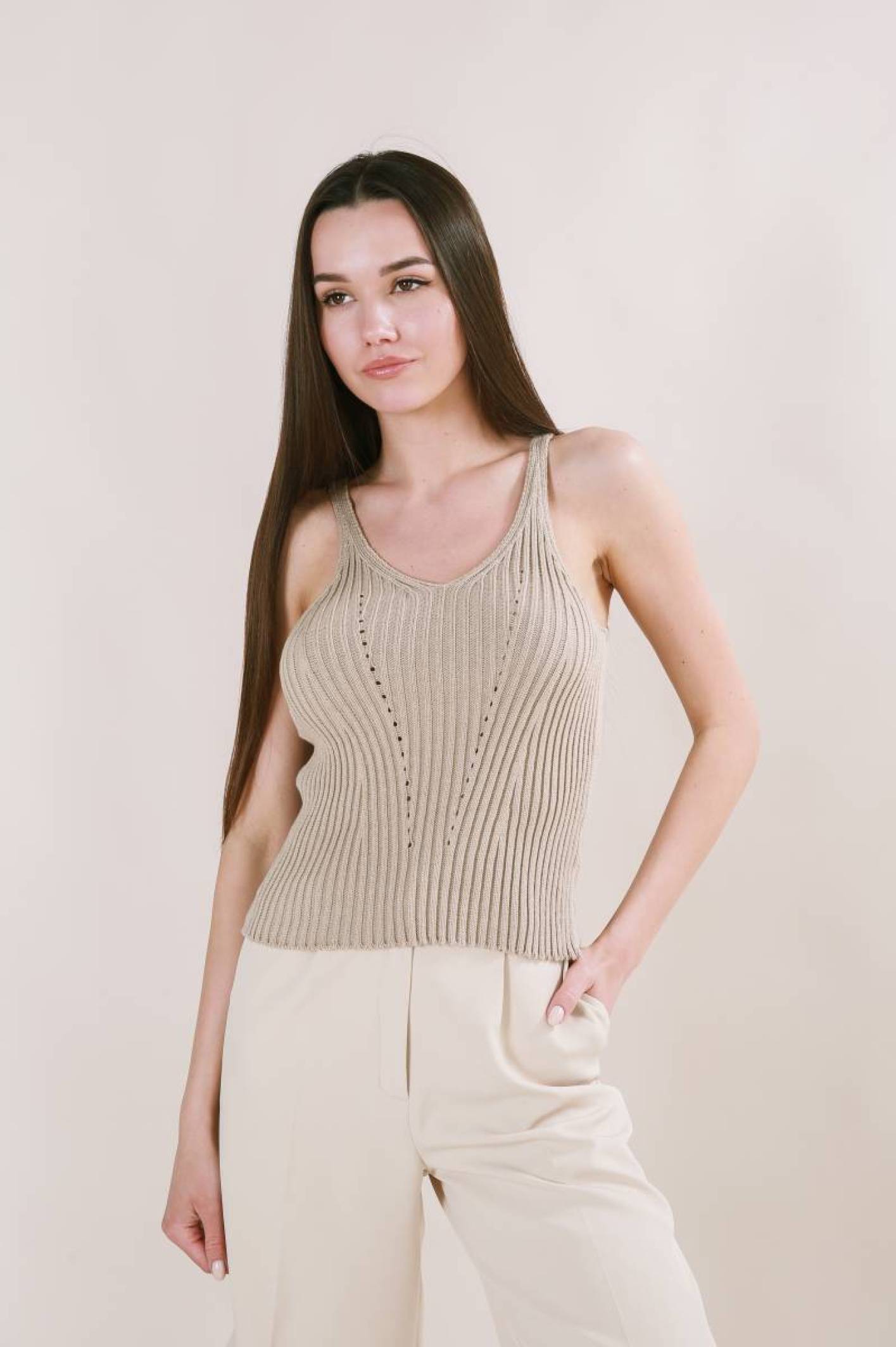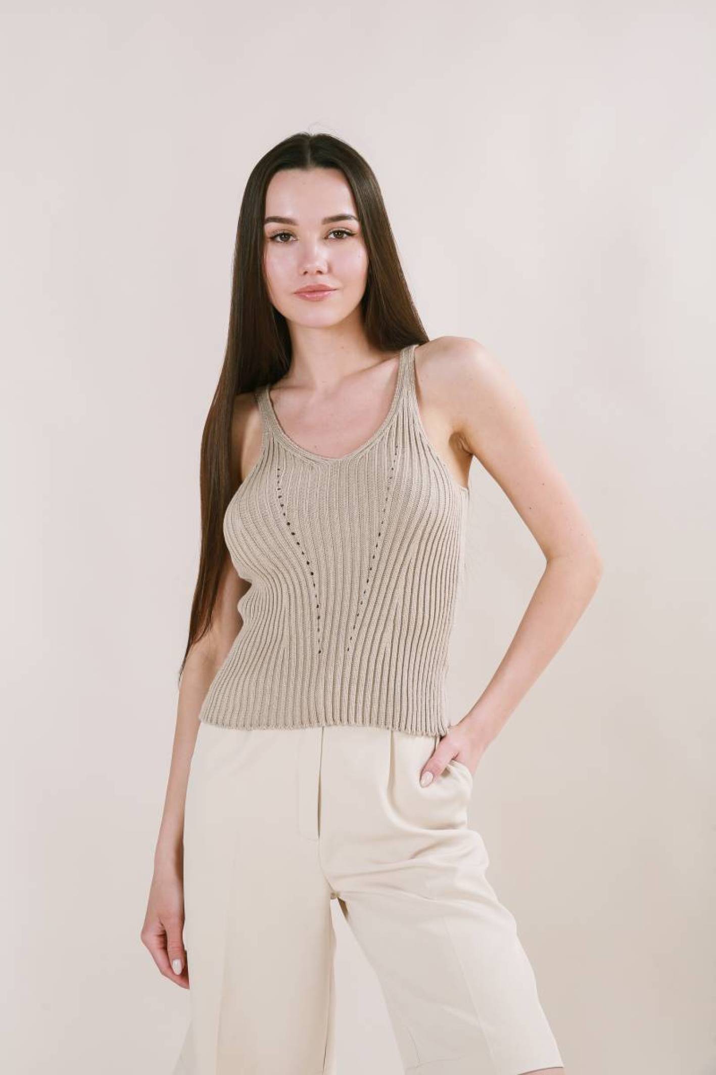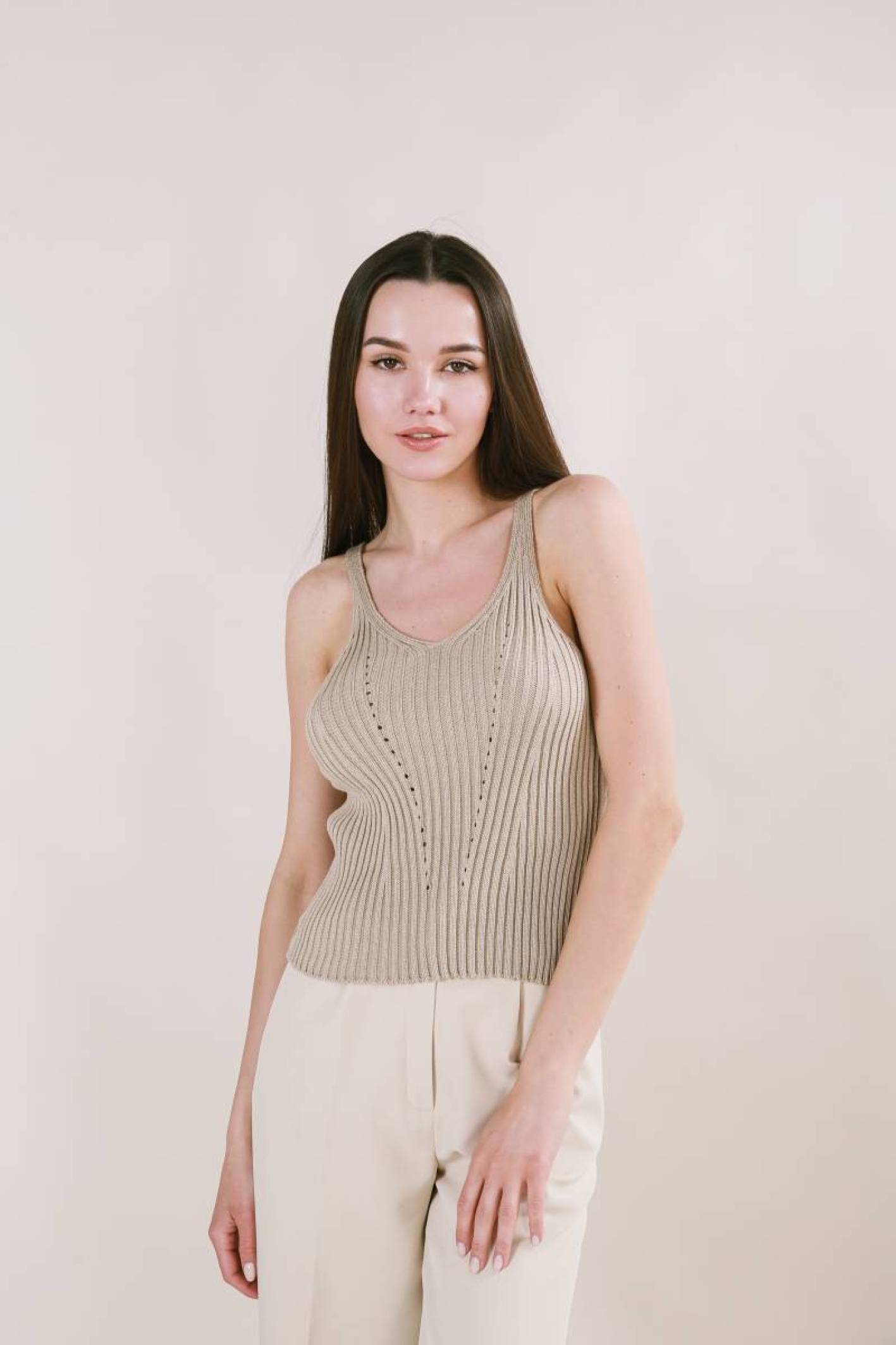 Майка "Бельгия" вязаная базовая на бретелях Romashka, Бежевый (3451)