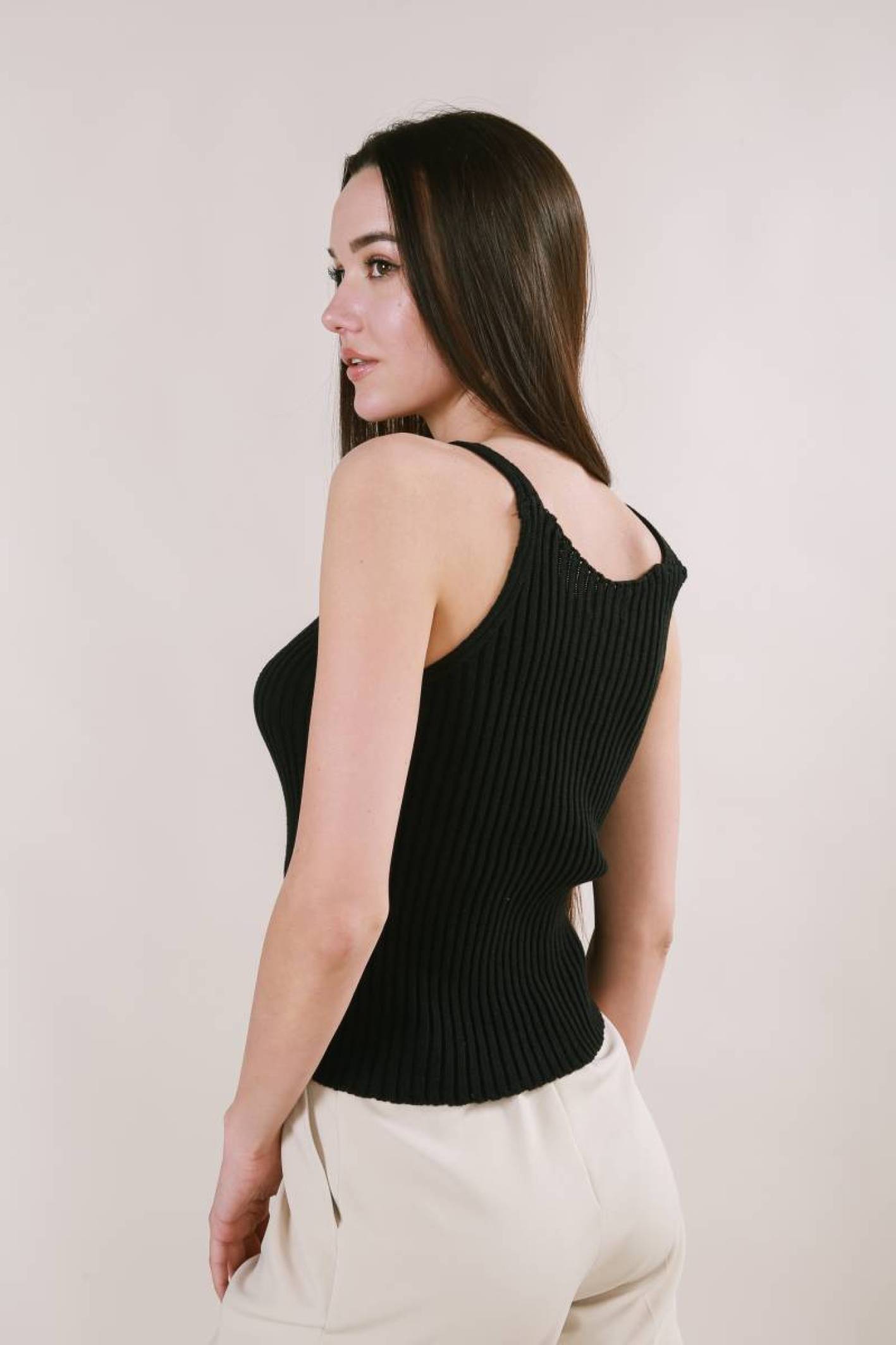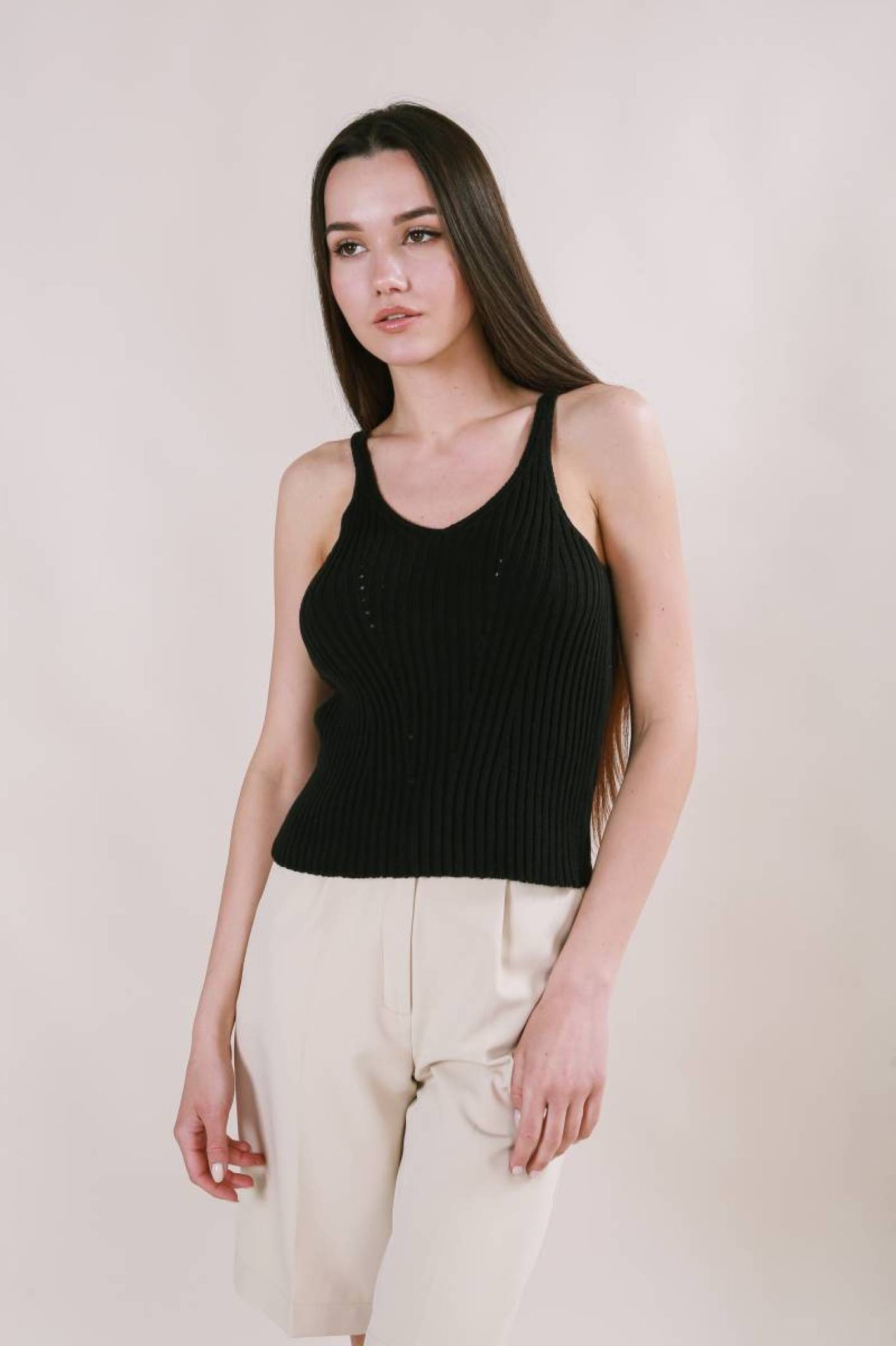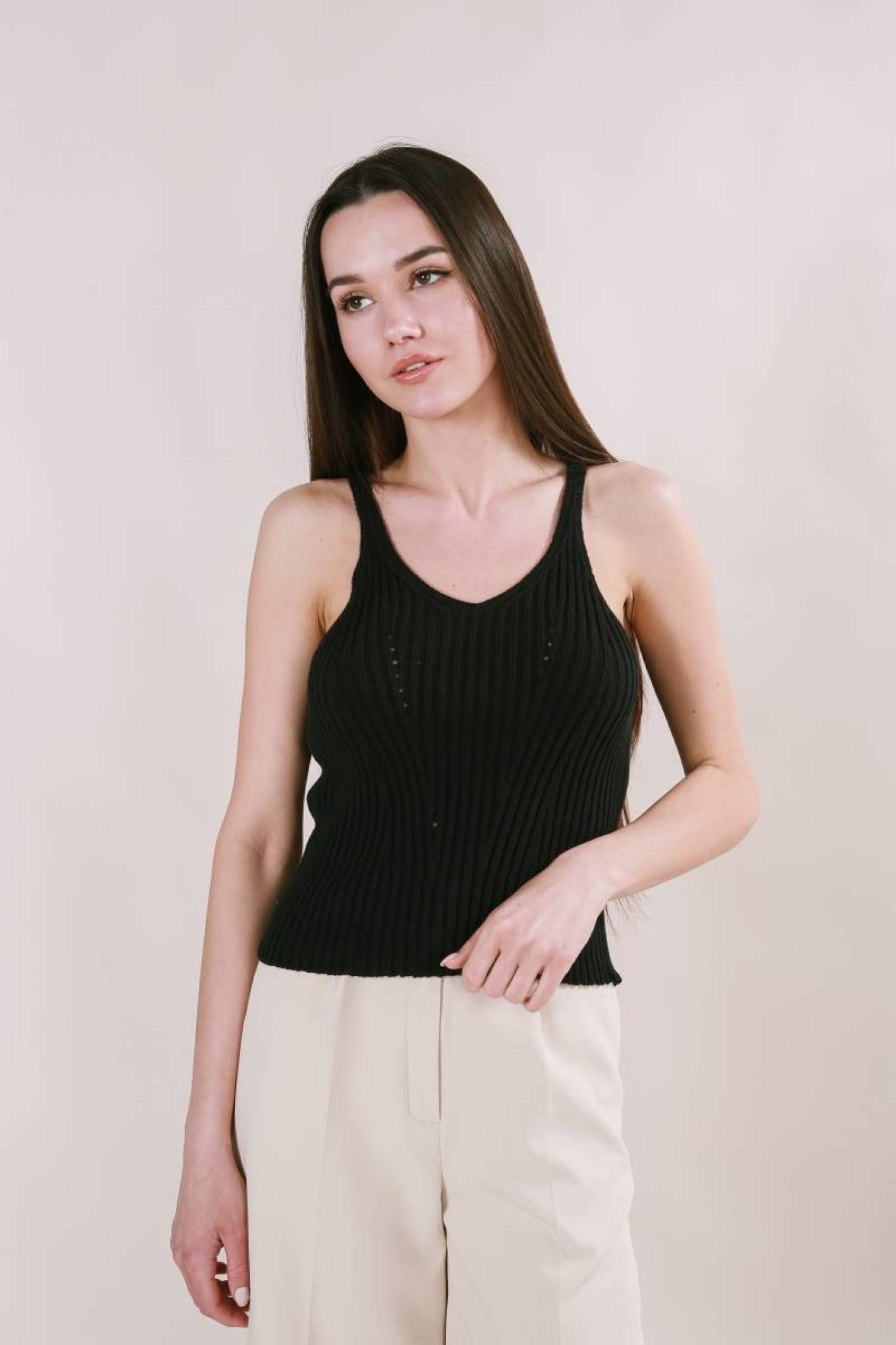 Майка "Бельгия" вязаная базовая на бретелях Romashka, Черный (3449)