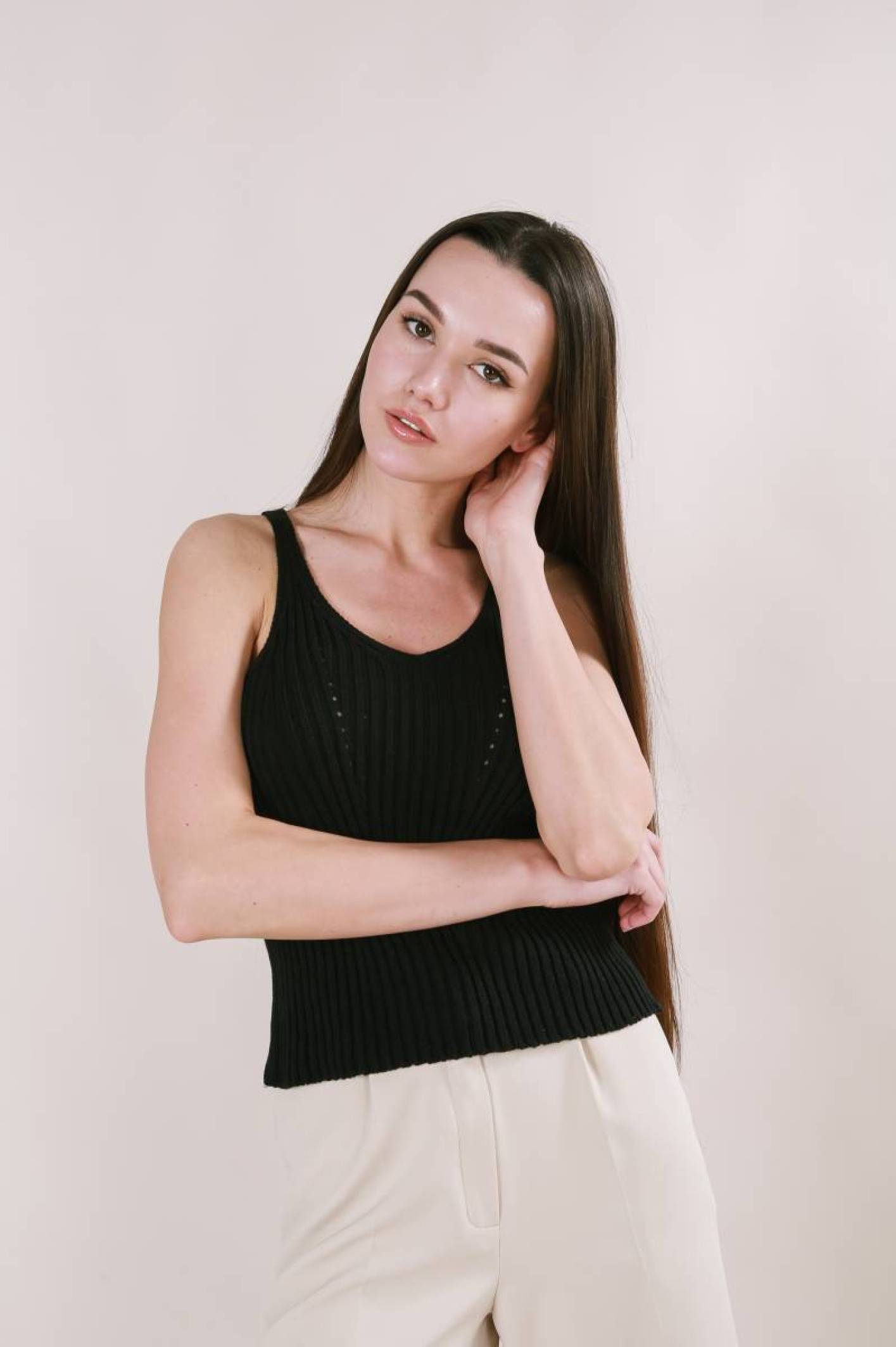 Майка "Бельгия" вязаная базовая на бретелях Romashka, Бежевый (3451)