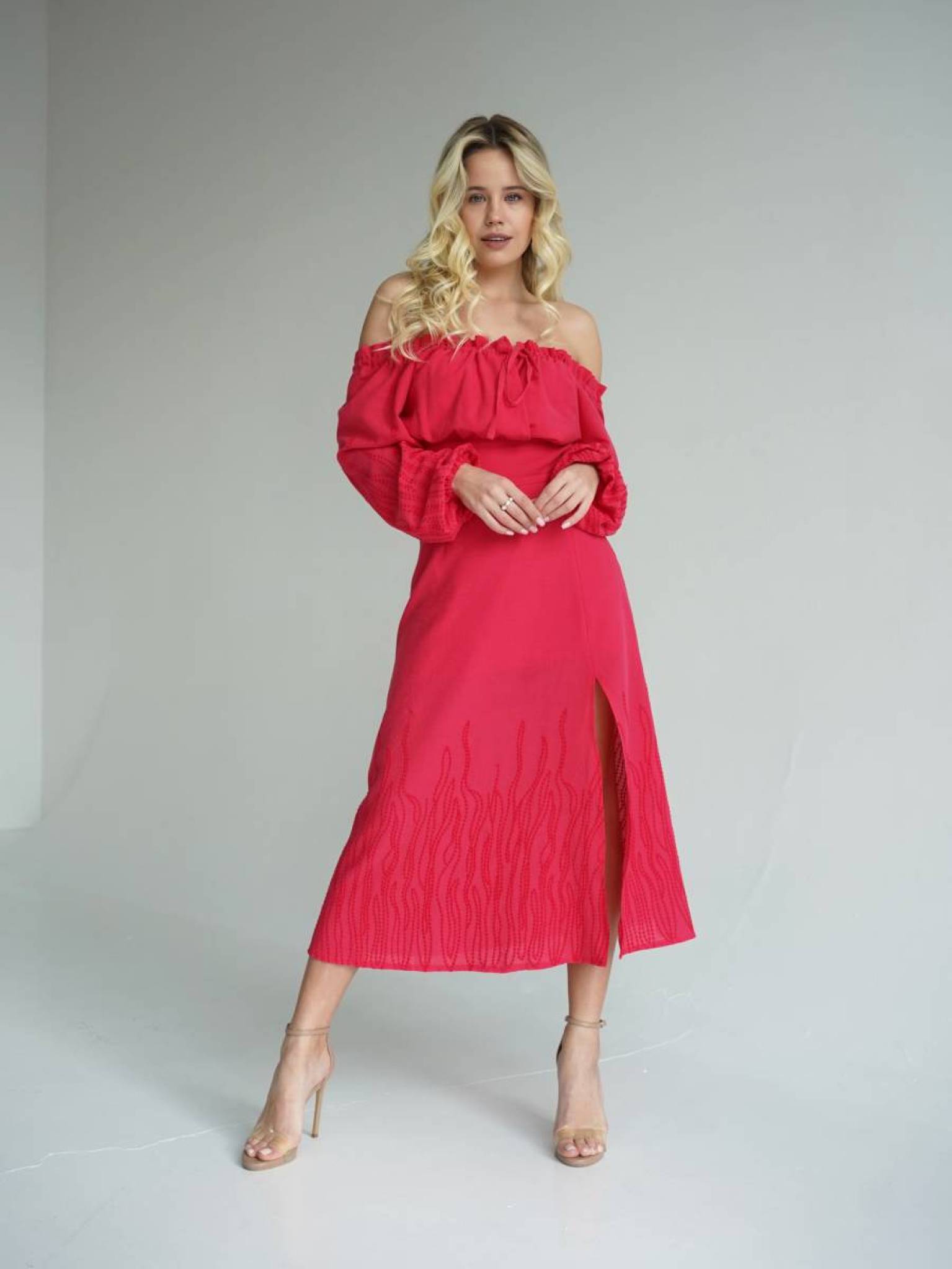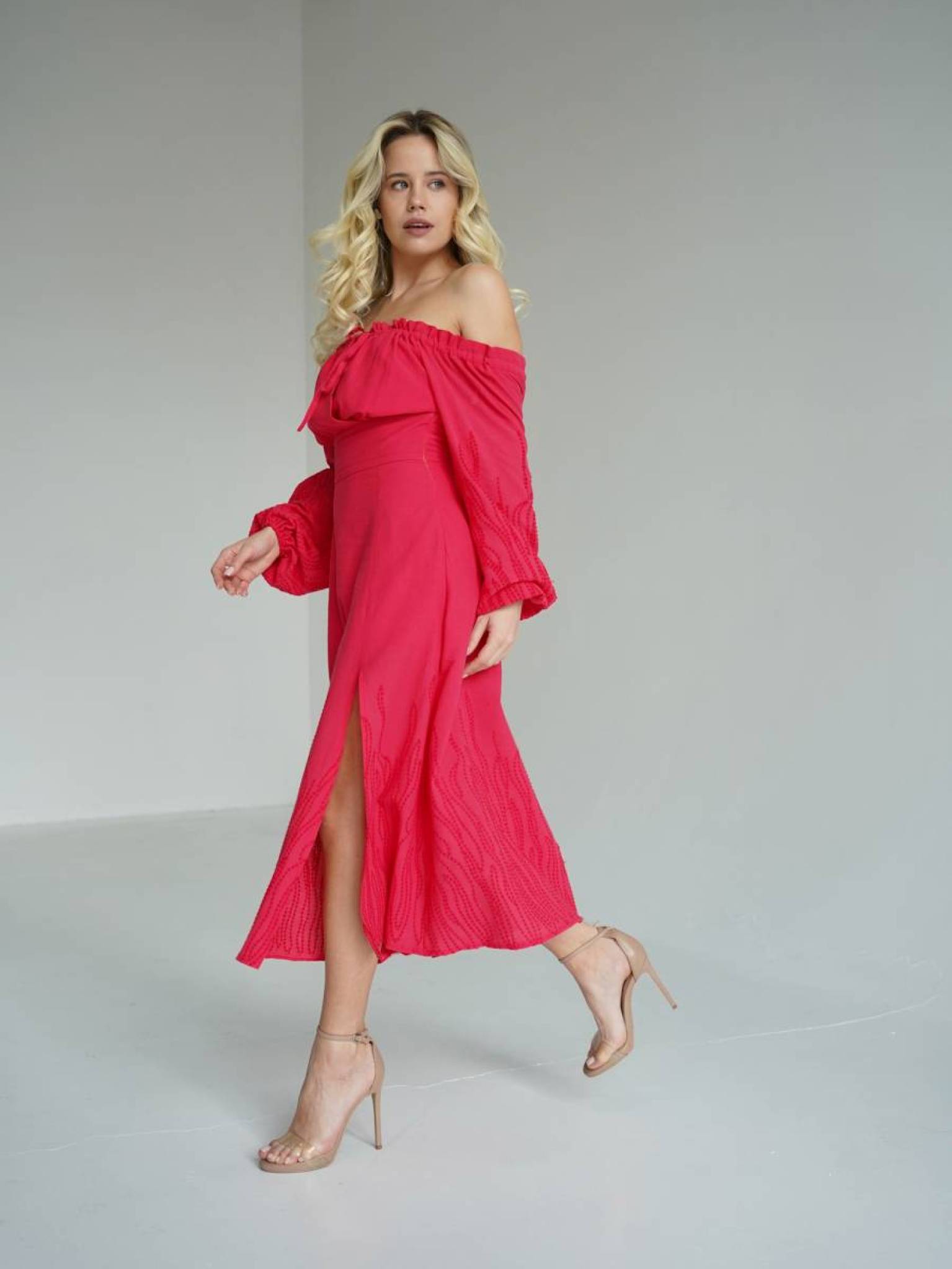 Платье "Альби" длины миди с разрезом Romashka, Розовый, L 15413