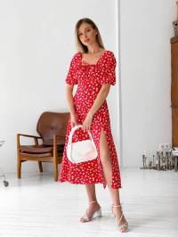 Платье «Сорренто» в мелкий цветочный принт Romashka, Красный, M 13143