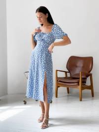 Платье «Сорренто» в мелкий цветочный принт Romashka, Голубой, XS 13137