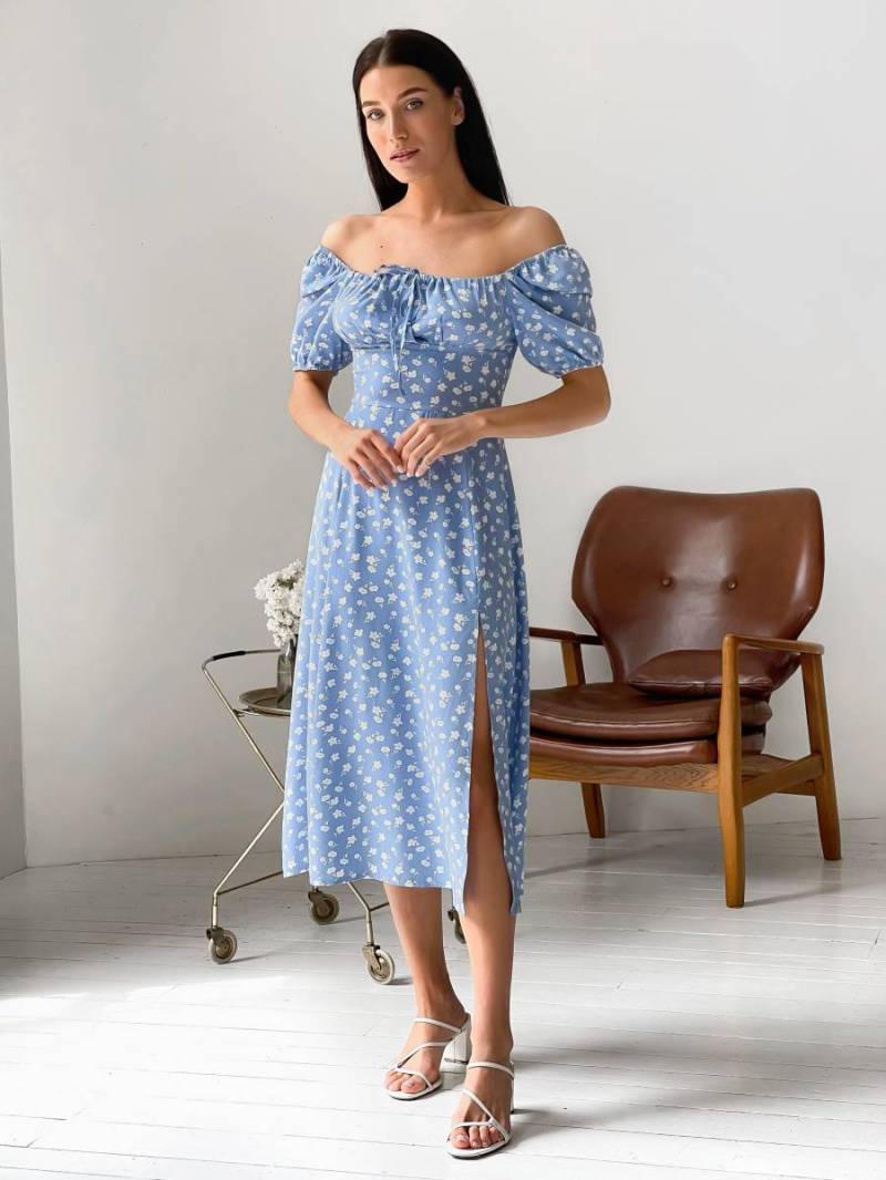 Платье «Сорренто» в мелкий цветочный принт Romashka, Голубой, M 13139
