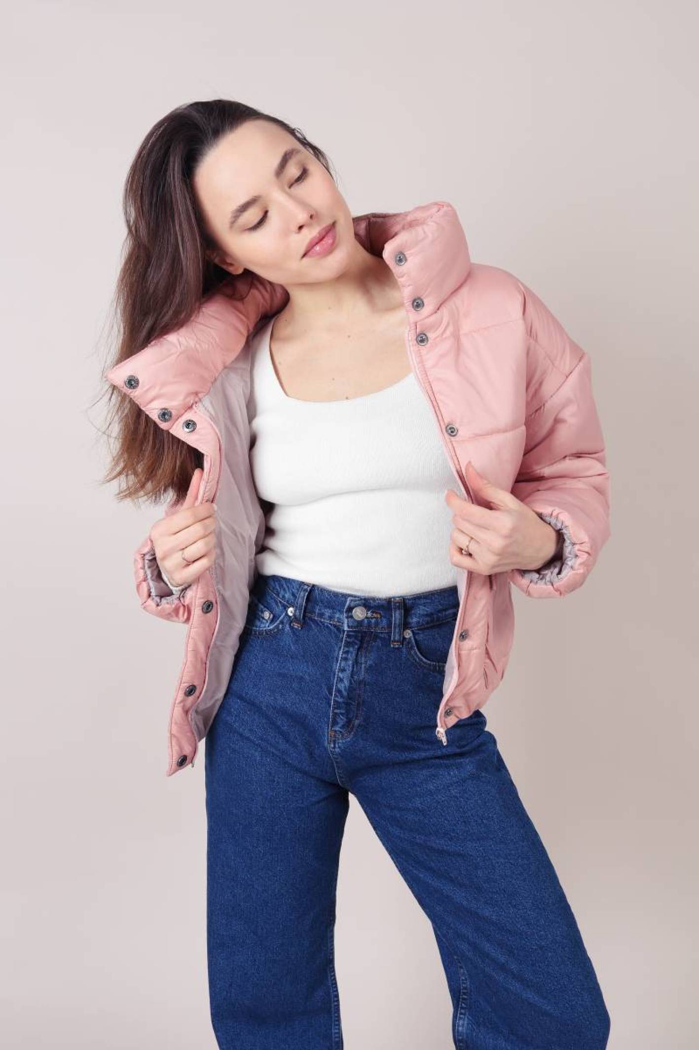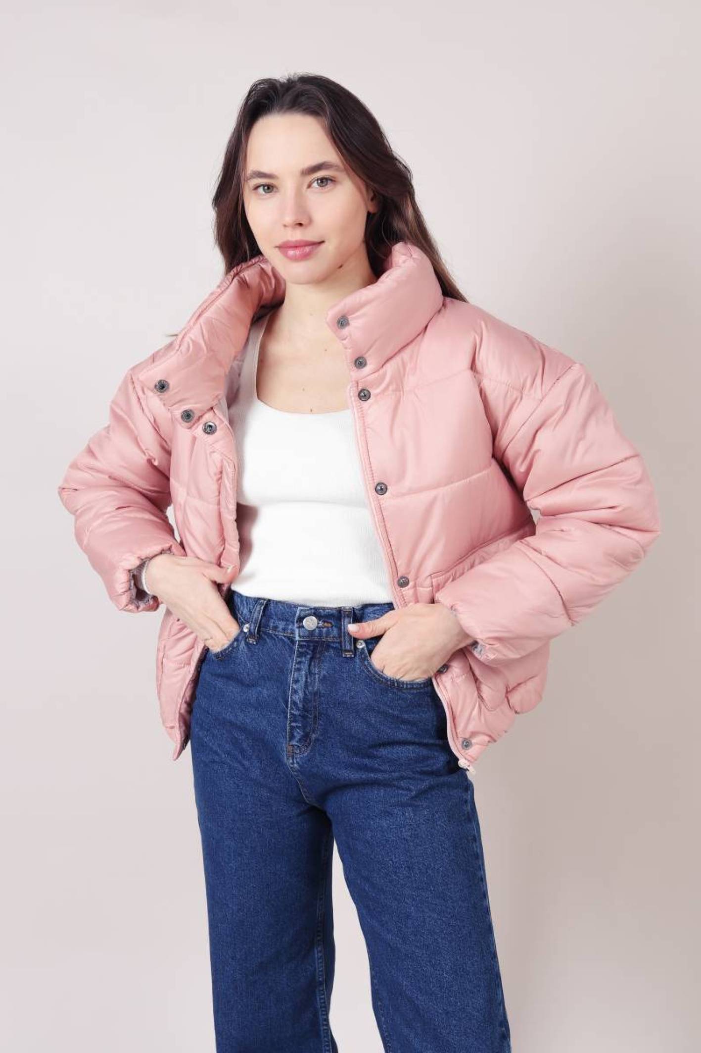 Пуховик "Калгари" короткий с карманом на кнопках Romashka, Розовый, L (2194)