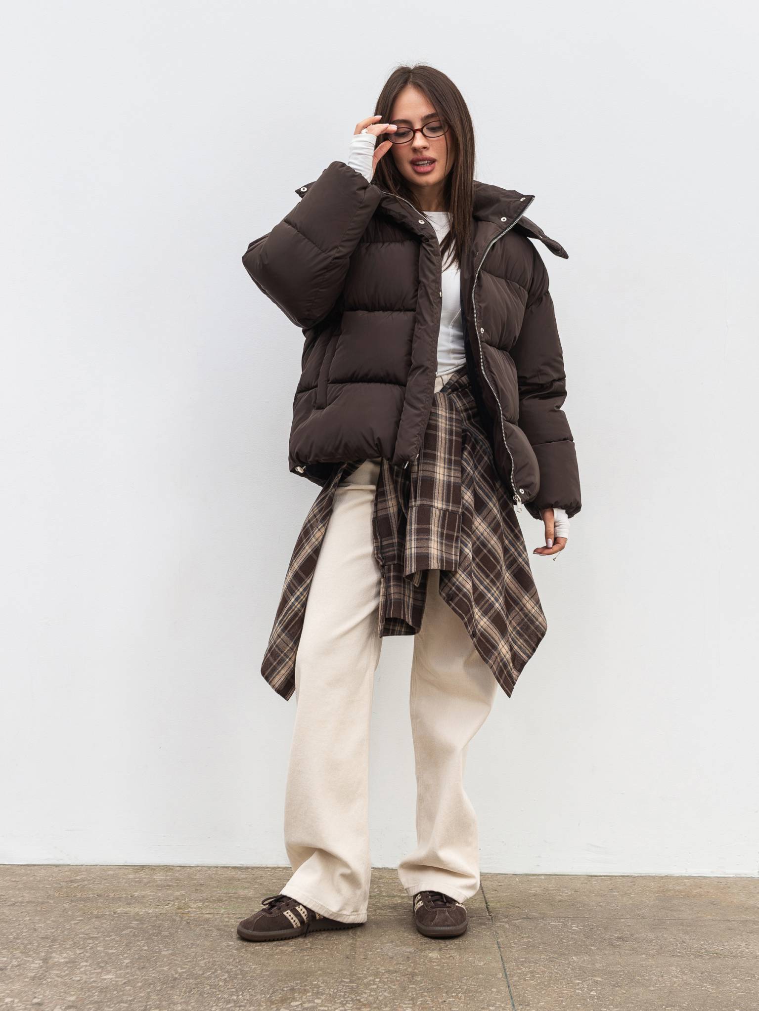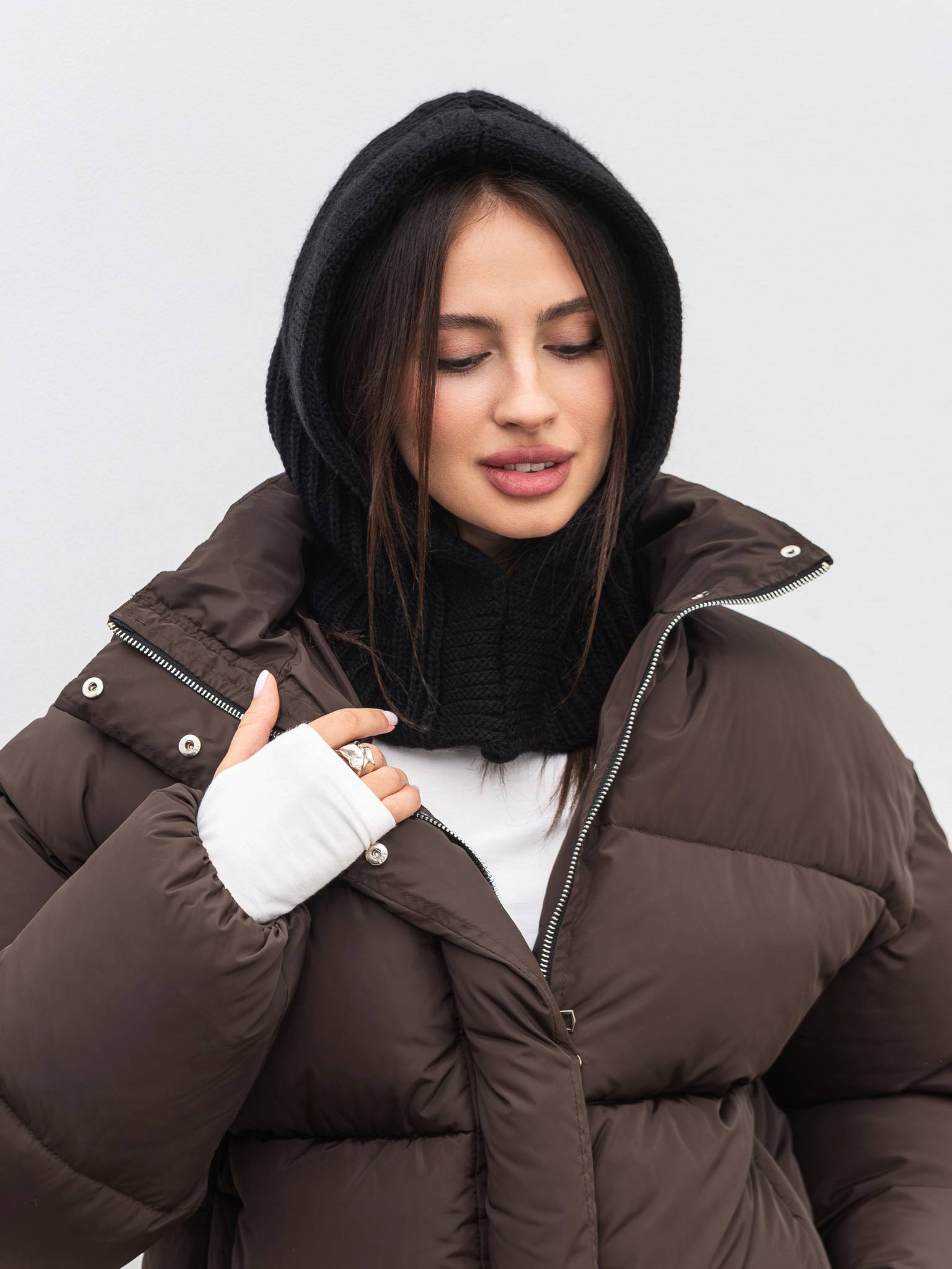 Пуховик "Монблан" Romashka, Коричневый, M|L 19864