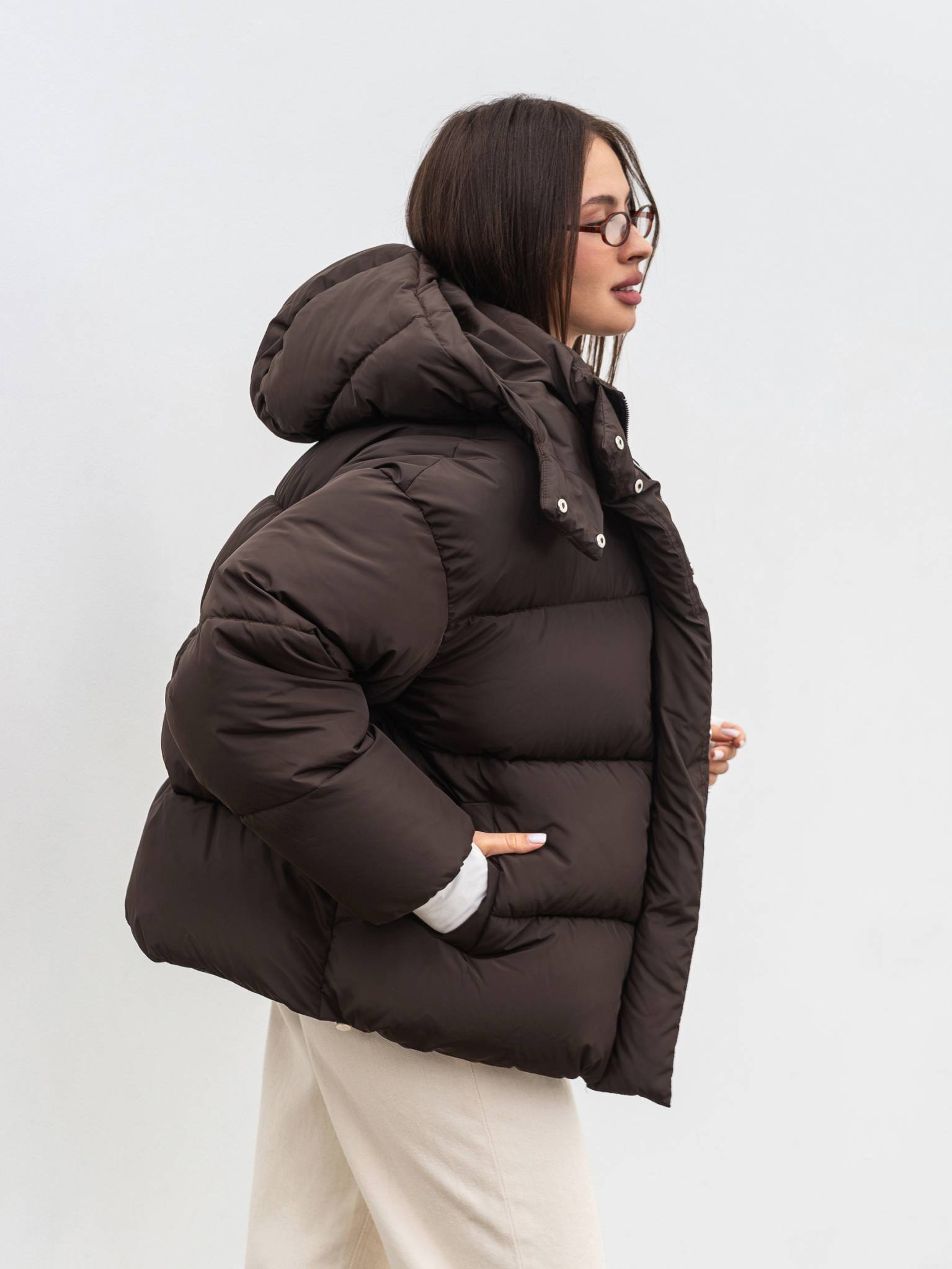 Пуховик "Монблан" Romashka, Коричневый, M|L 19864