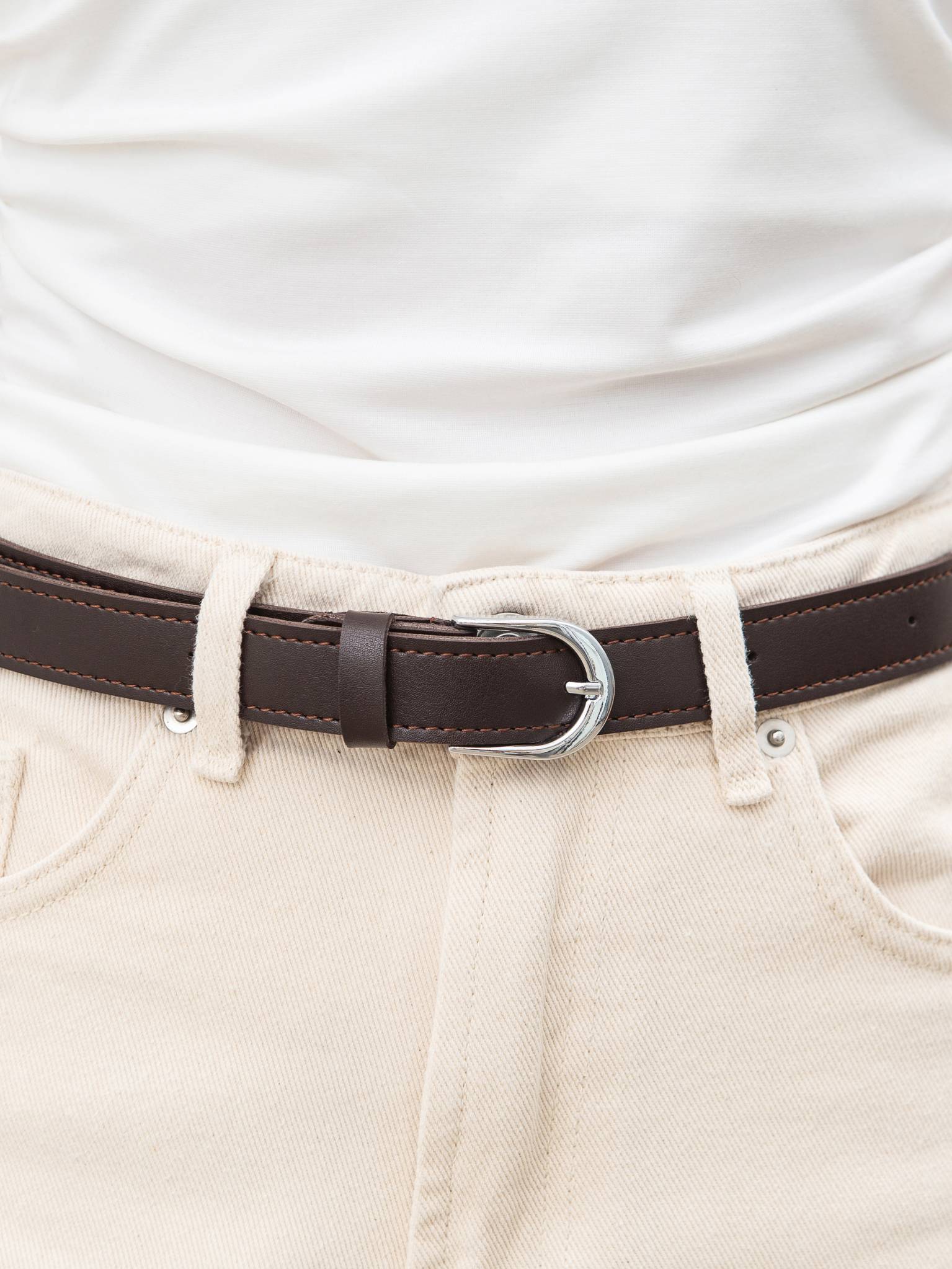 Ремешок «Акцент» Romashka, Бежевый с серебряной пряжкой 19359 |