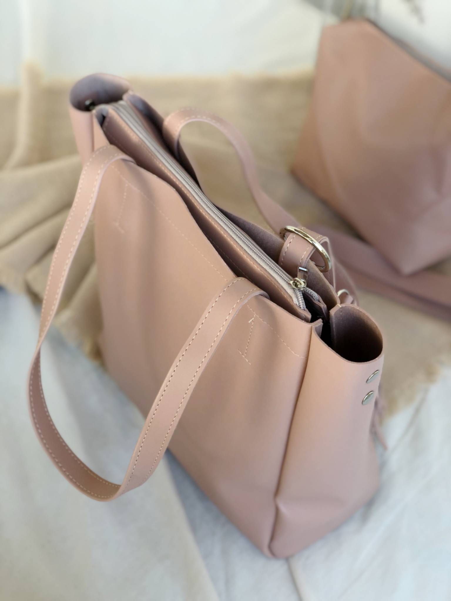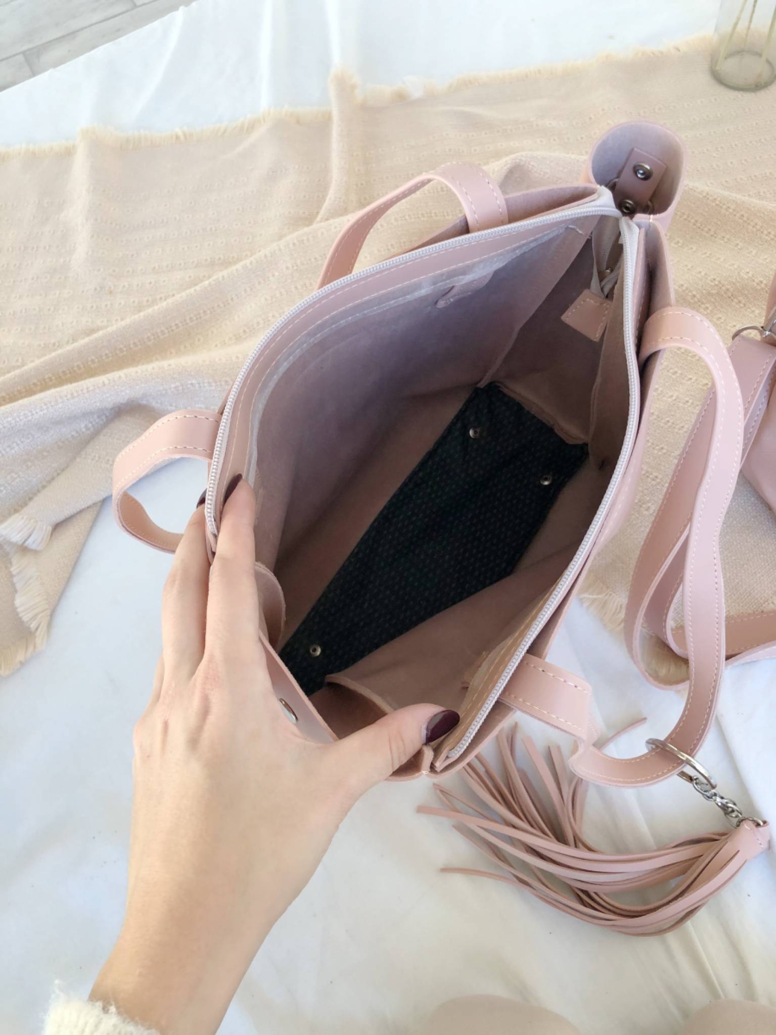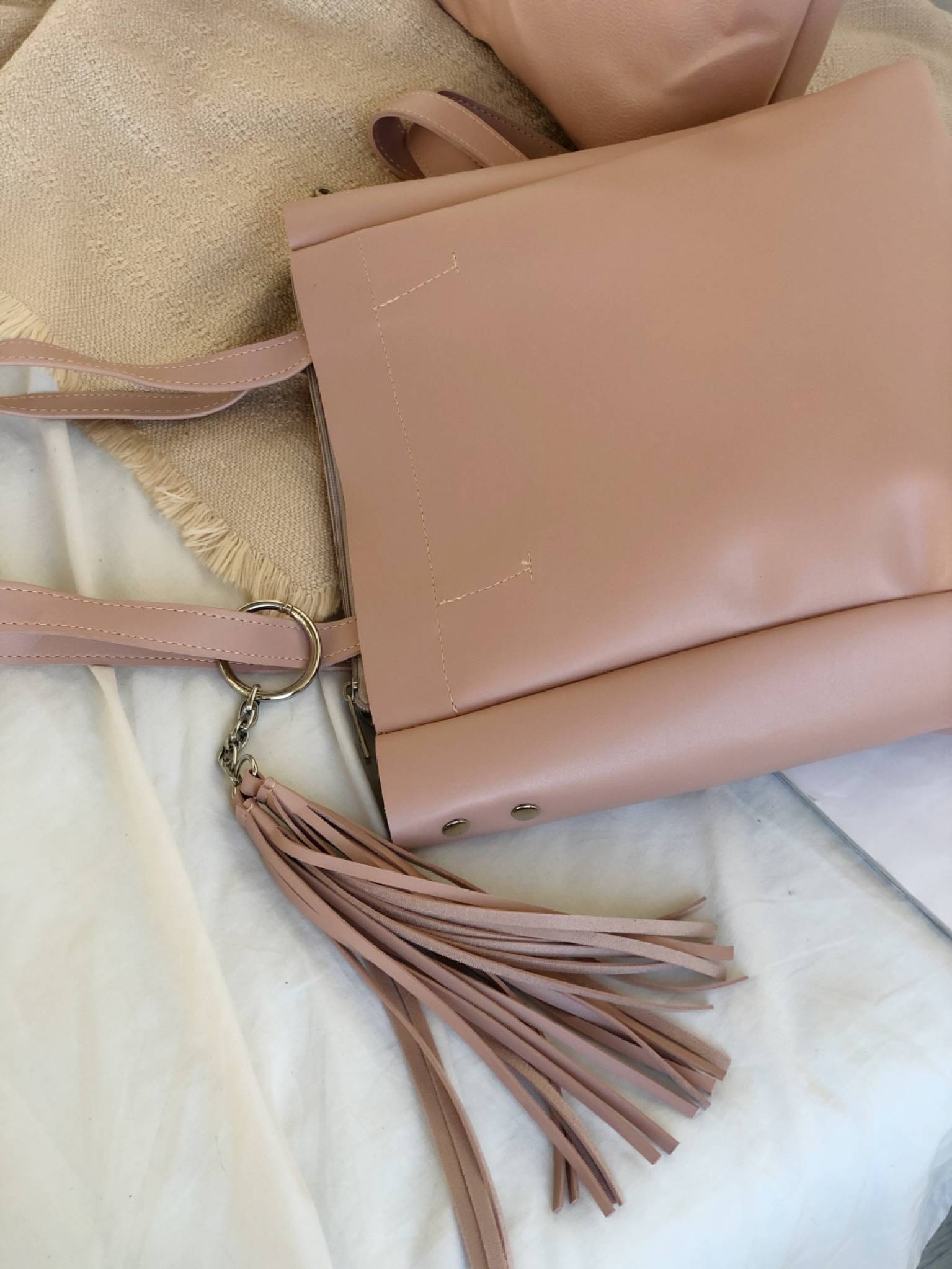 Шоппер "Равенна" с кисточками с длинными ручками и ремнем Romashka, Пудра (736)