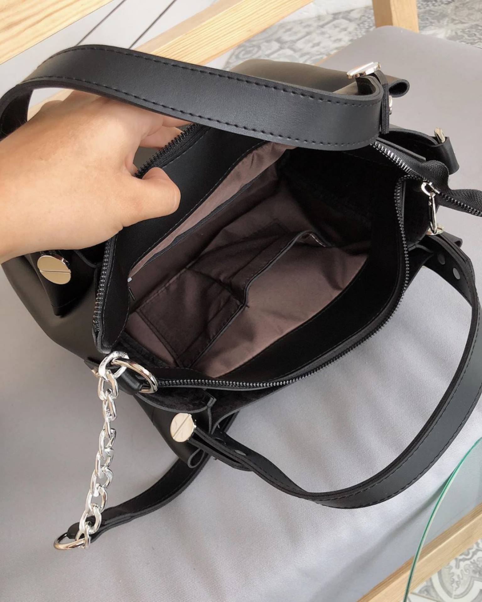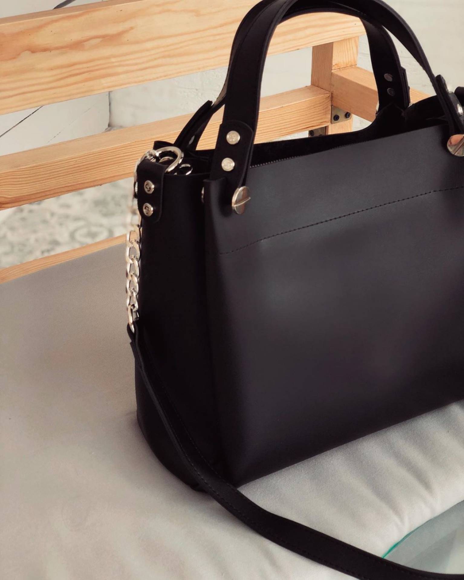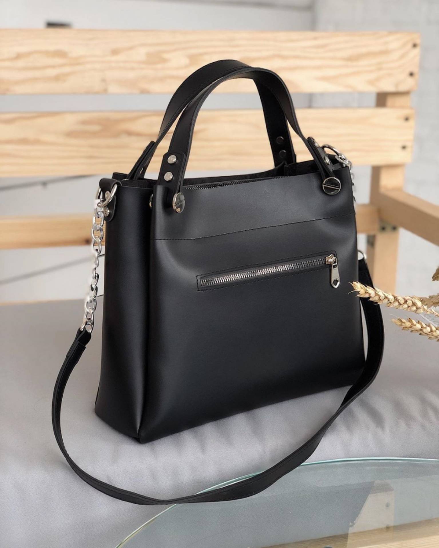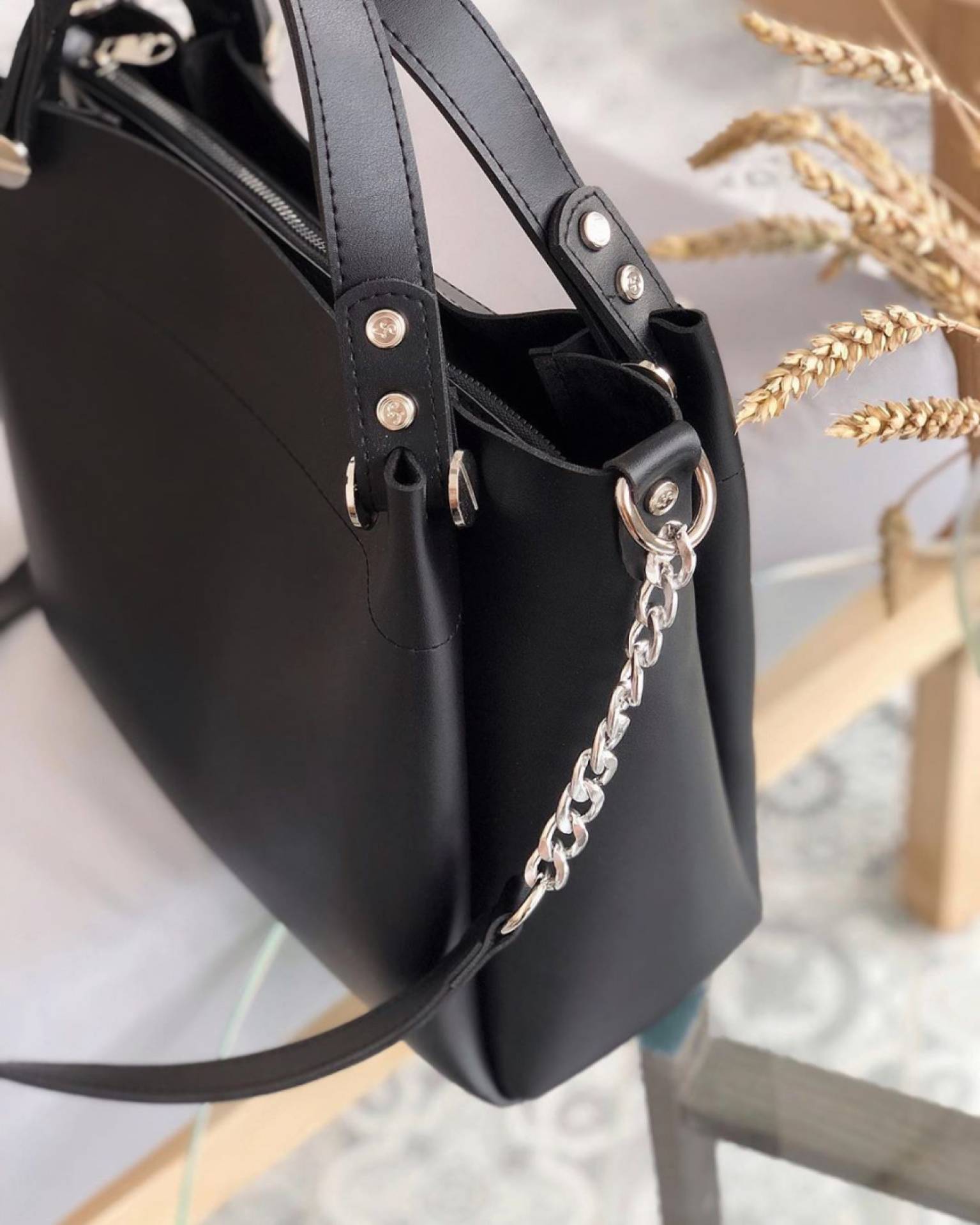 Шоппер "Триест" с гвоздиками и ремешком Romashka, Черный (764)