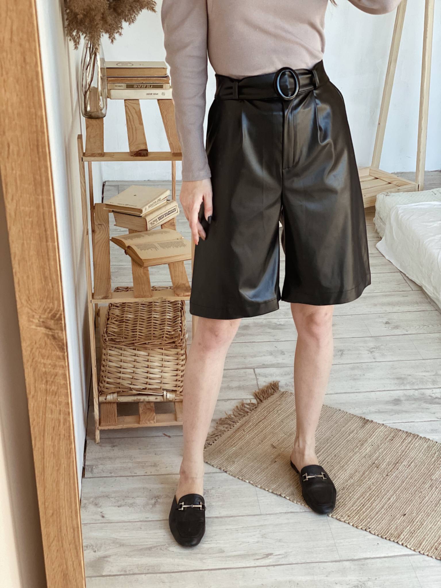| Шорты "Элджин" удлиненные под кожу Romashka, Черный, S (3316) |