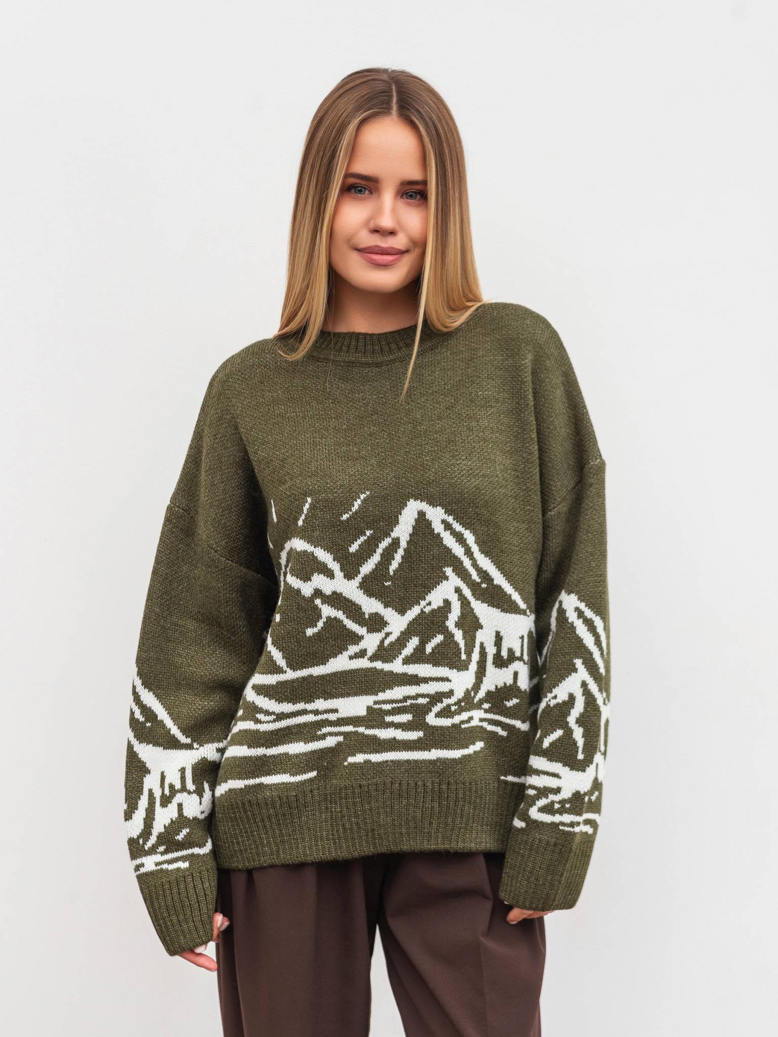Свитер "Шепит" Romashka, Оливковый, One size 19753