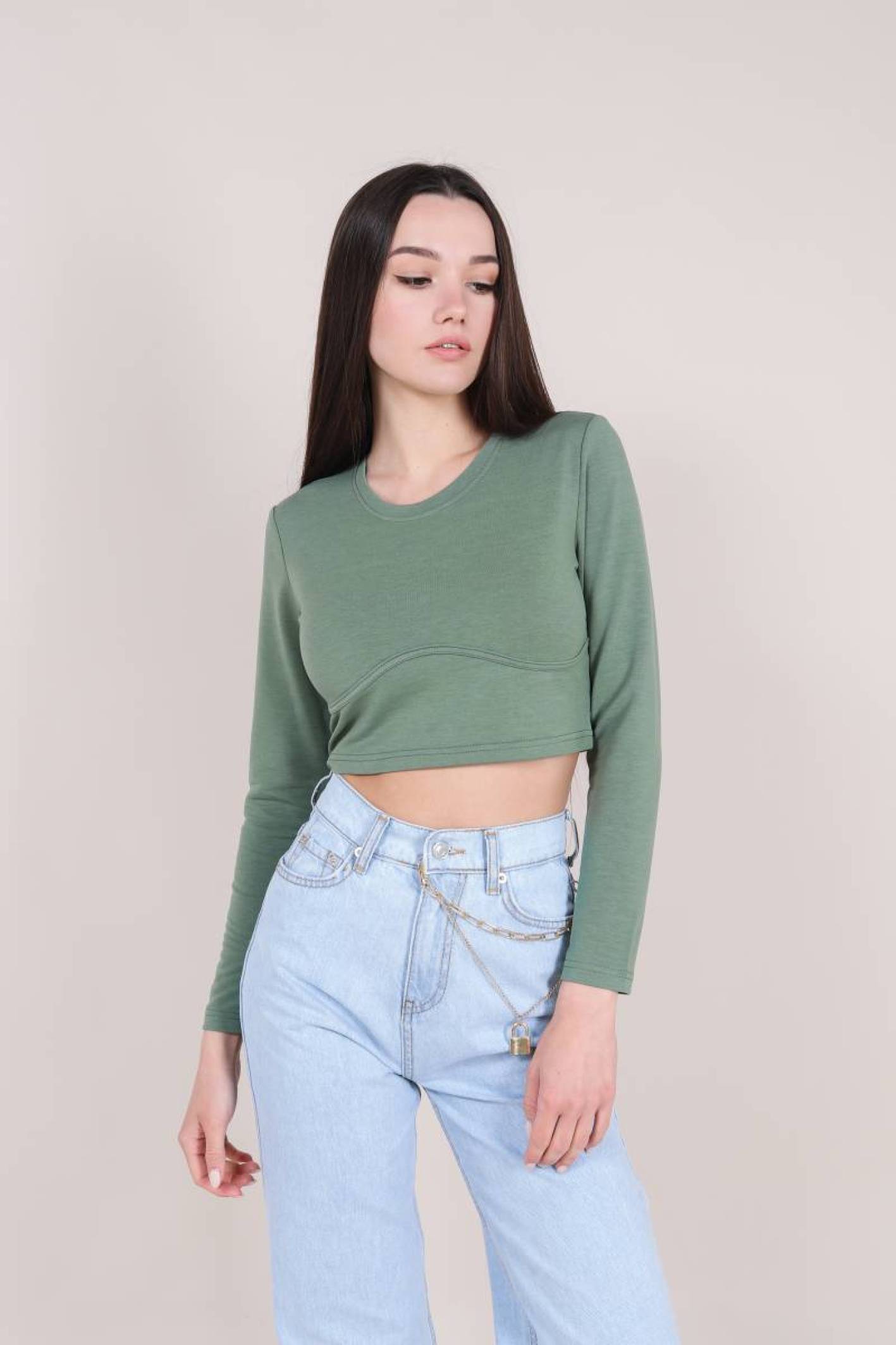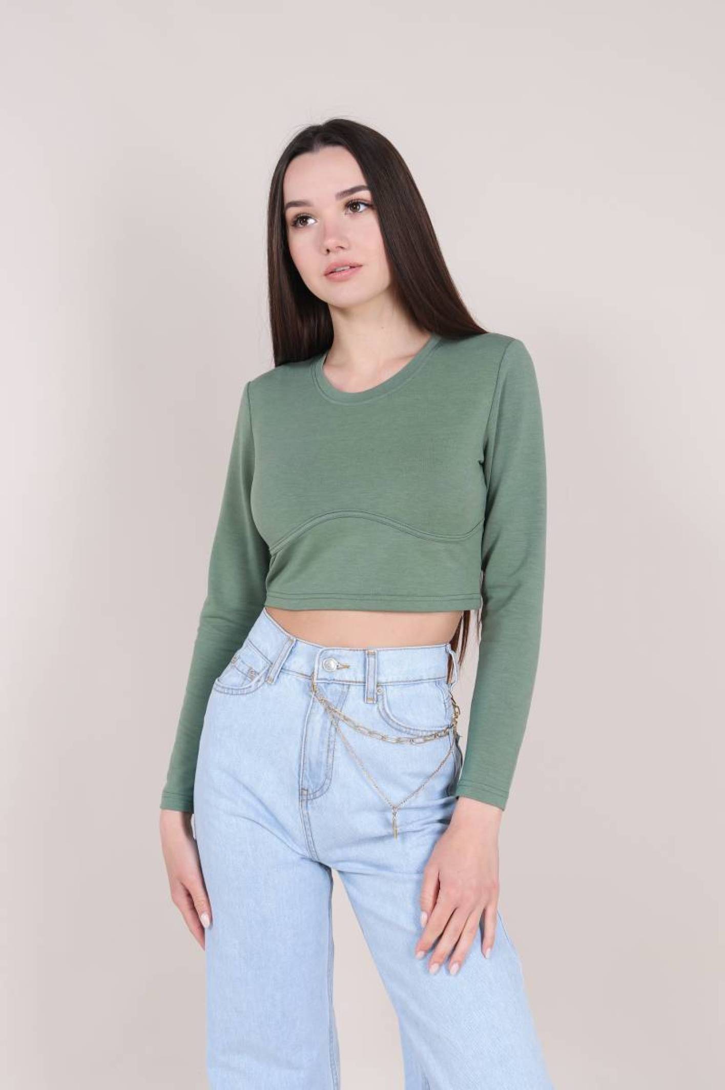 Топ "Бостон" с длинным рукавом Romashka, Фисташковый, S (3934)