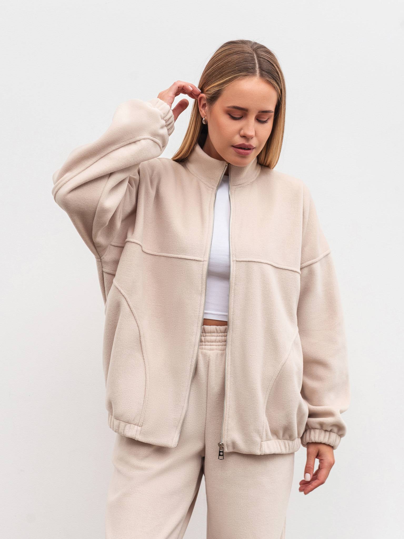 Удлиненный флисовый бомбер "Норд" Romashka, Бежевый, M|L 19780