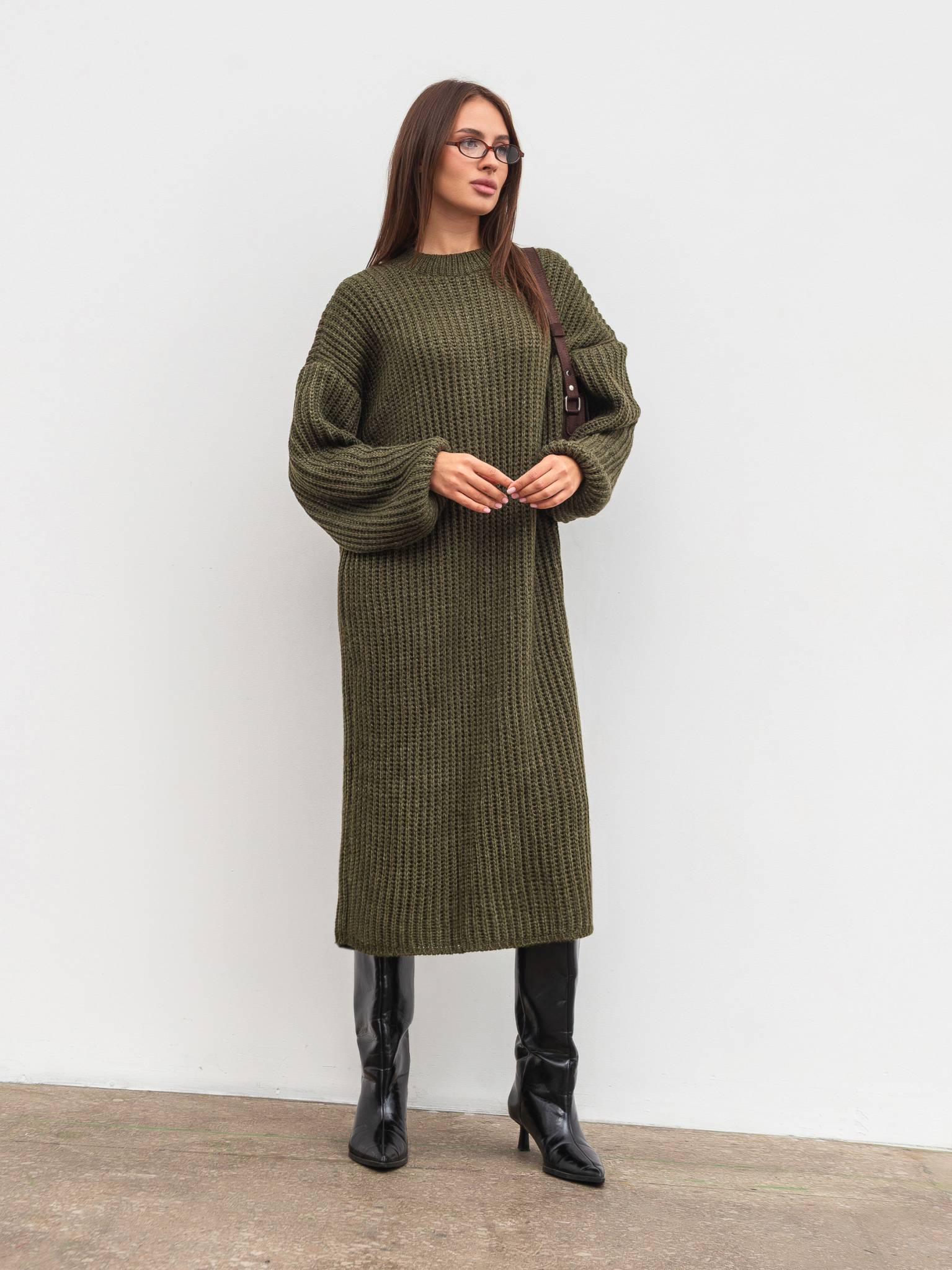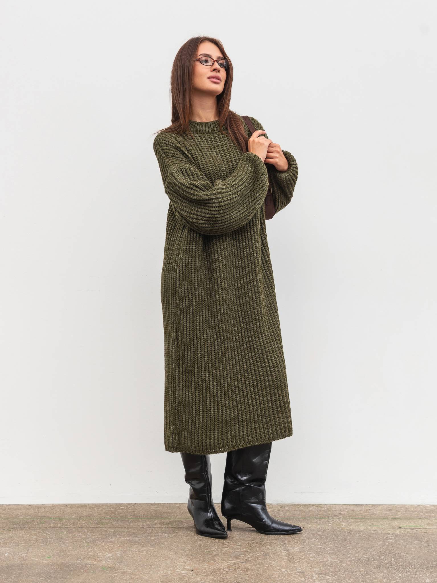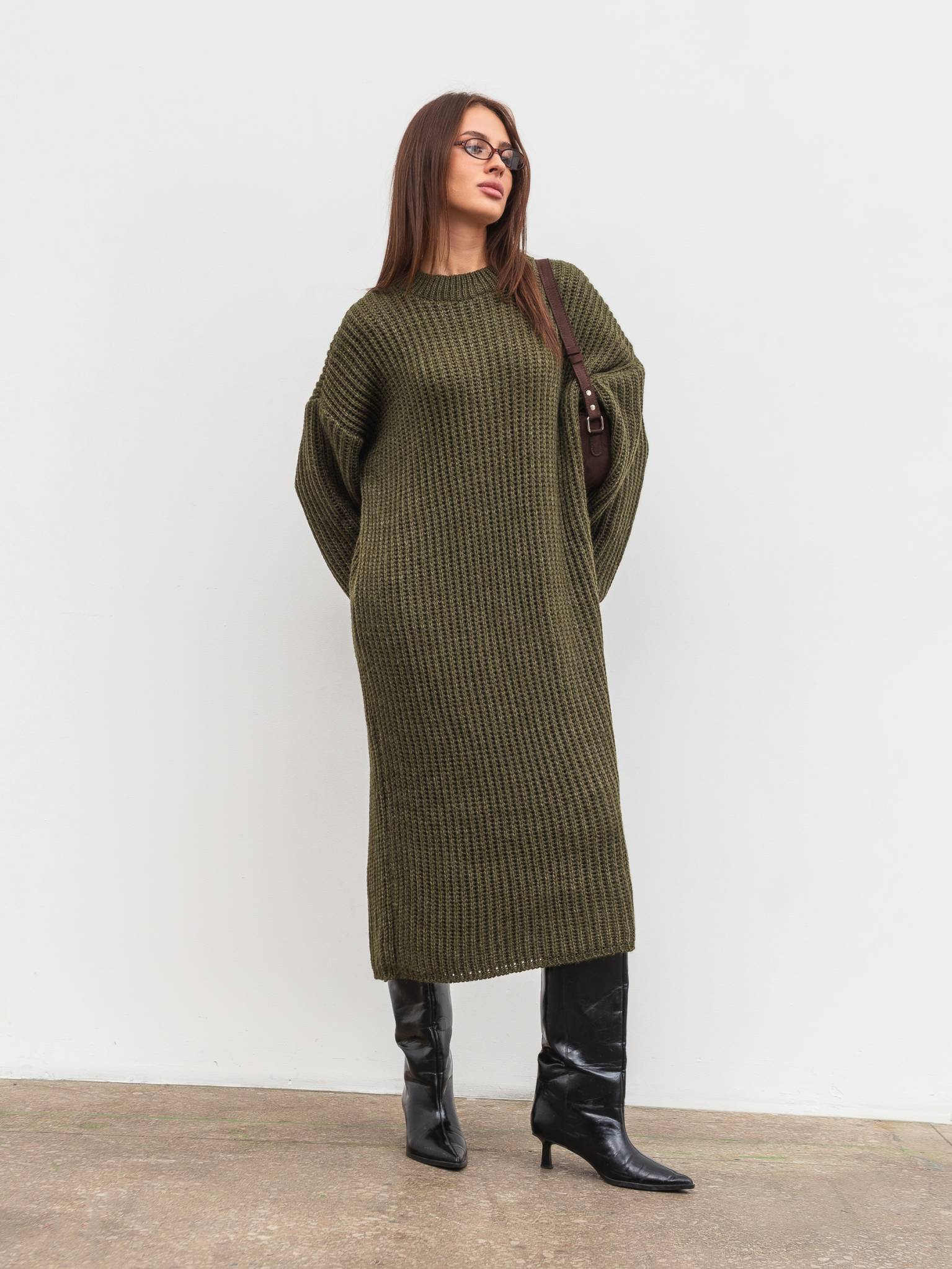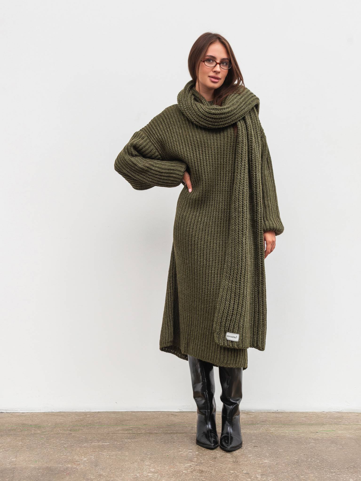 Вязаное платье "Кассель" Romashka, Оливковый, One size 19807