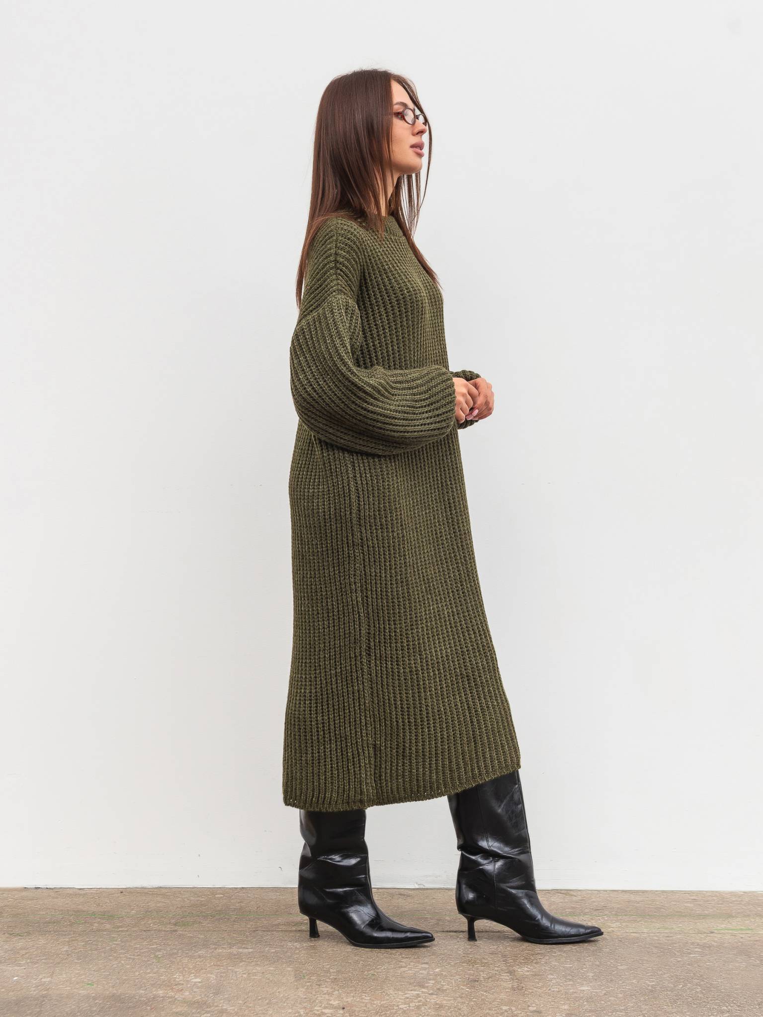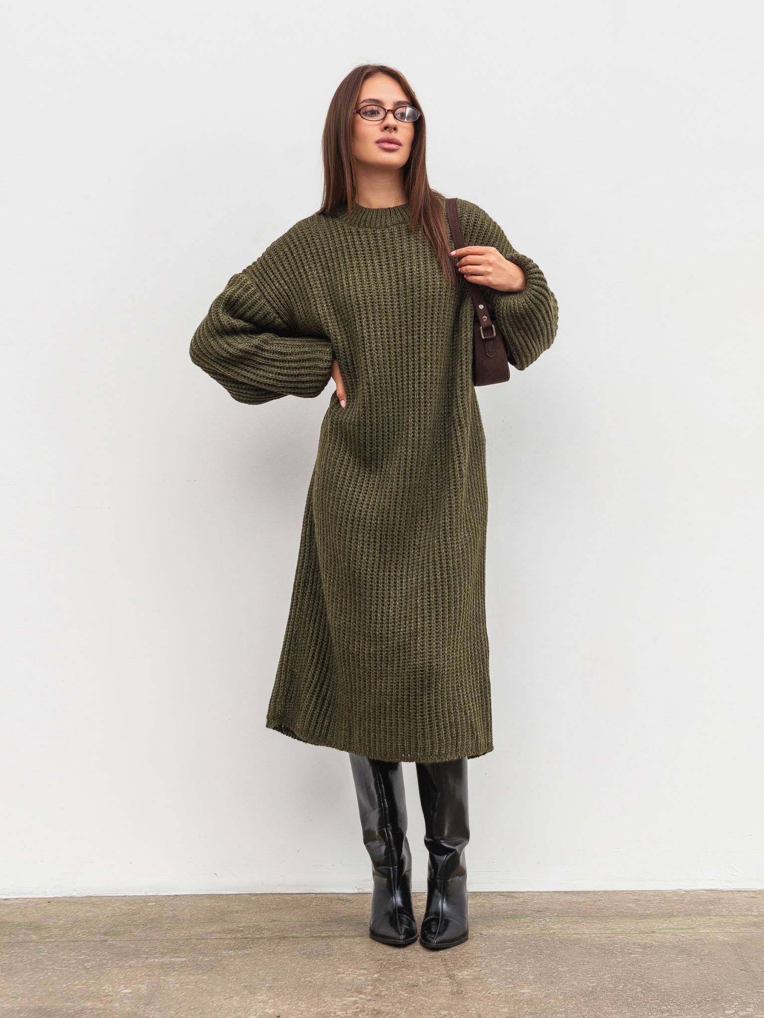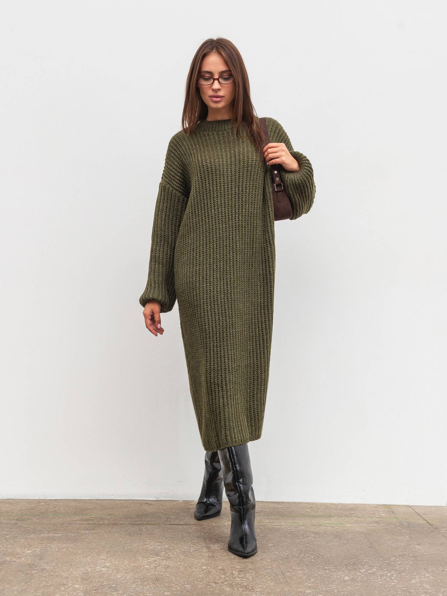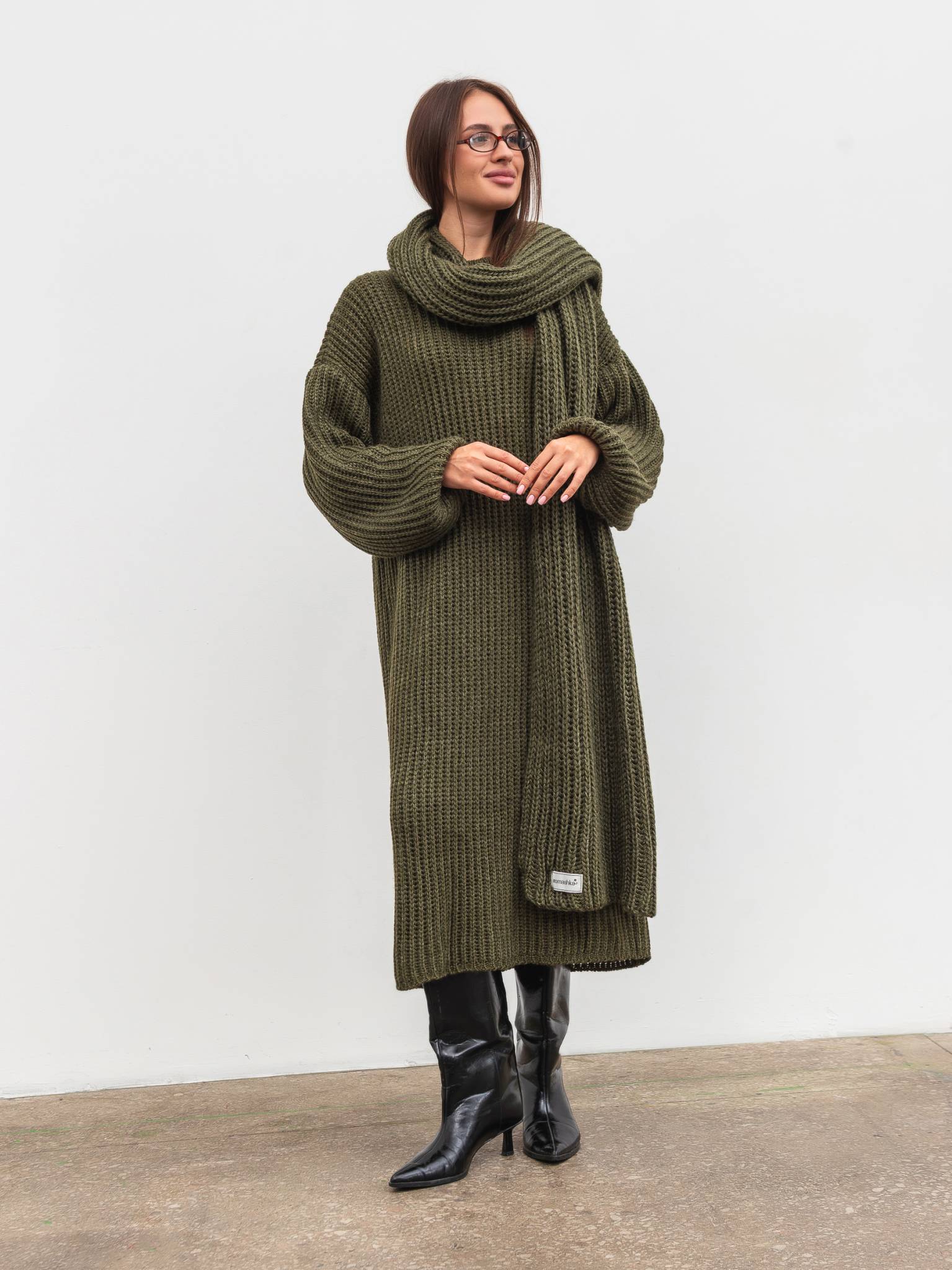 Вязаное платье "Кассель" Romashka, Оливковый, One size 19807